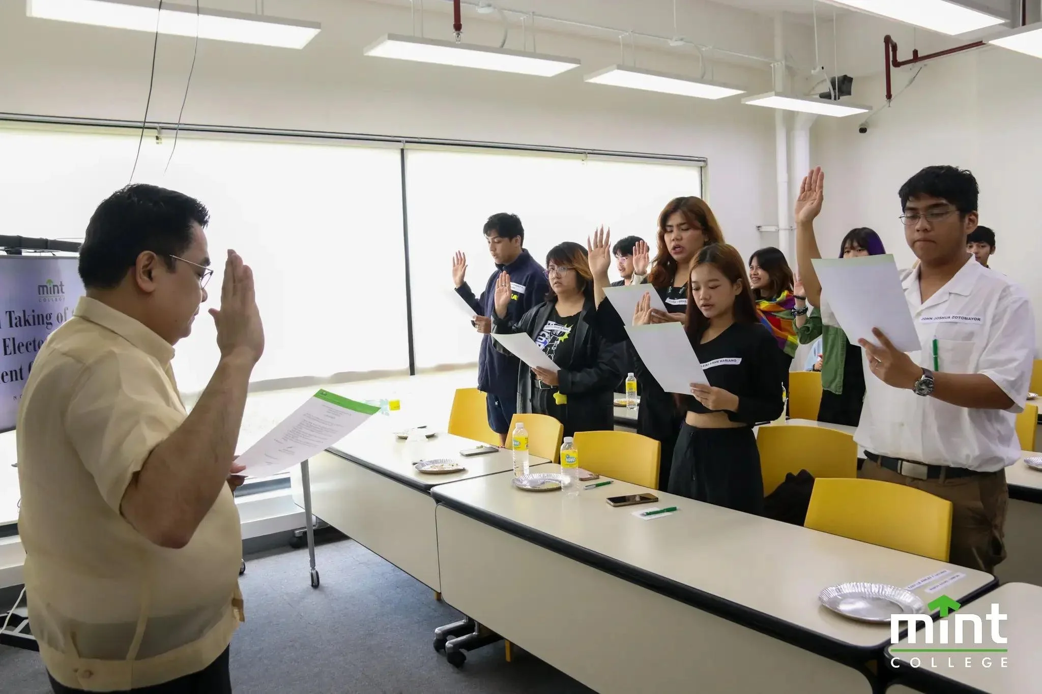 At Ortigas East Campus last week, MINT welcomed its newly elected ParliaMINT and Executive Council members from both college and senior high through a double oath-taking ceremony.